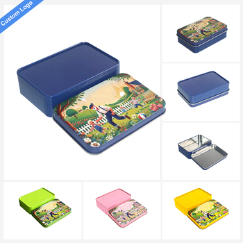 Rompecabezas metálicos rectangulares impresos dibujos animados personalizados, regalo, Chocolate, caramelo, menta, almacenamiento de joyas, cajas de hierro, caja de lata de Metal
