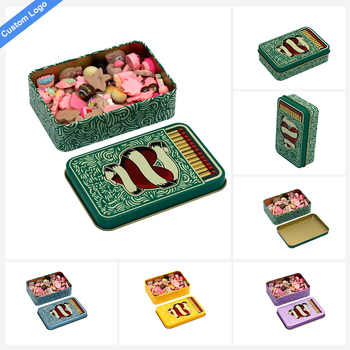 Reciclable al por mayor de estaño personalizado cuadrado Rectangular cosmético caramelo cigarrillo Metal embalaje caja de lata con tapa de bisagra