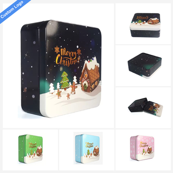 Caja de lata de Navidad cuadrada de metal personalizada al por mayor pastel chocolate regalo caramelo galleta embalaje
